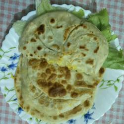 Mix dry flour and cooking oil and spread it in the middle of the dough sheet to ensure that the middle of the entire egg-filled pancake will definitely bulge so that you can pour the egg liquid into it.With this step added, your egg-filled pancakes will definitely be a success.