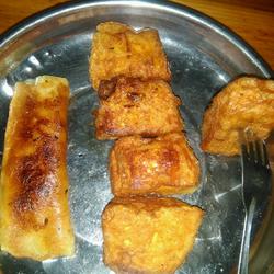 4.Wrap Put the steamed bun slices with egg liquid into the oil pan, fry until both sides are golden, then take them out