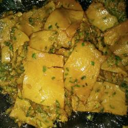 7.Wait for the quick-forming to turn over and fry again, cut into pieces with a spatula, pour some soy sauce, and it is ready to serve...