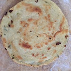 3.cut Crispy chopped green onion, divide the large dough into four small doughs, then roll the small dough into thin slices, add the prepared green onion oil and salt sauce, and then knead into a ball