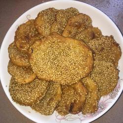 6.Press the sesame dish flat and stick the sesame seeds on it