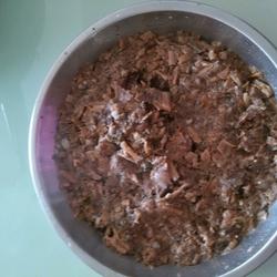 4.Put the pork glue on a plate, mix the auxiliary ingredients and pork glue evenly