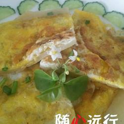 7. Fry the eggs until there is a little egg liquid left on the back, add the cake, wait for the cake to stick, turn it over, wait until there are patterns, then you can take it out of the pan