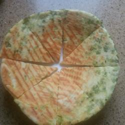 6.Preheat the electric pancake pan and scallion pancake, heat for 1 minute more, and sprinkle oil in the pan , put the cake and sprinkle oil on the cake