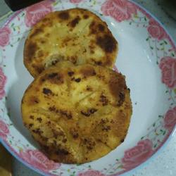 6. Roll out the dough, Put the stuffing, just like twisting a bun, twist it and put the pleats underneath, flatten it and it will be a meatloaf.Put oil in the pan, put the meatloaf and start frying