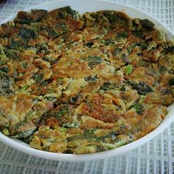 4.Put oil in the pot, boil it, and mix the eggs evenly Put the liquid into the pan and stir-fry until the eggs are solidified but not completely hard.Use a spatula to press the eggs into a cake.Fry over low heat for a while.Turn the pan over to flip the egg cake and fry for a few more minutes.