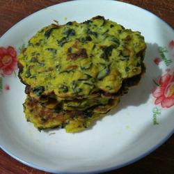 10. Delicious fungus, melon, celery and egg pancakes on a plate