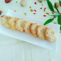 8.Put it directly into the sesame plate, roll it, and flatten it gently with your hands to make both sides covered with sesame seeds