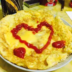 4.1 minute egg pancake is cooked through and out of the pan! Use ketchup to create your favorite picture^_^