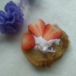 18.Third Put a slice of banana muffin on top, squeeze a little cream at the end, put the strawberries on top, and you're ready to eat