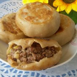 Tip: Mending patties are relatively thick, cook them over low heat for about 10 minutes Left and right, don't rush the fire, the meat filling will not cook well if the fire is too fast.You don't need to add baking powder, yeast powder, and baking soda to the flour.Just use warm water to make the dough soft, just like baking flatbread noodles.The pancakes will not break with loose noodles.Adding onions does not enhance the aroma, but adding half a green onion will bring out the flavor immediately.Baked diced leaves are the best.