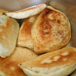 5.Use a spoon to make a lump on the dough sheet, pinch the mouth, and place it on the electric pancake stall to fry until brown on both sides.The fragrant pie is ready