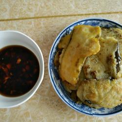 3.Put the eggplant in the batter and place it in the pot until golden brown on both sides.