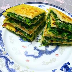 2.Kneading the dough , roll the dough into a cake, and spread the spinach filling evenly on the dough