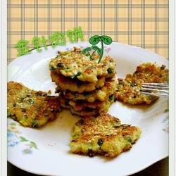 5. Pour a little oil into the pan and heat it up.Be sure to use low heat.Scoop a spoonful of batter and lightly Flatten lightly with the bottom of a spoon, trim slightly around the edges, and sprinkle with white sesame seeds before solidification