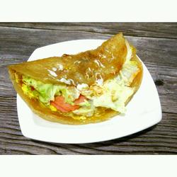 9. After they are all cooked, put them into the hand cake together and then coat them Tomato sauce, salad dressing or other sauces you like, just fold it in half! I put too much oil in the crust of this hand-grilled pancake.Be careful not to put too much oil when frying