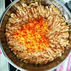 5.Sprinkle with diced carrots.Steam over water for 25 minutes.