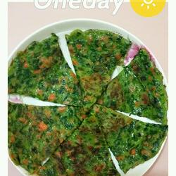 3. Pour the leek juice into the flour and mix with the dough, add Appropriate amount of water.If the leek juice is enough, you don’t need to add water.Pour in the chopped leeks, carrot cubes and diced meat, and mix the noodles until they are thick.You can control the thickness according to your preference