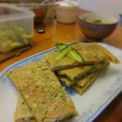 3. Turn on the preheated electric baking pan, pour in an appropriate amount of oil, and mix well Pour the batter into the electric baking pan and shake it from side to side.Turn on the top and bottom of the electric pan and fry for about 5 minutes.