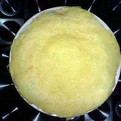 4.Pour a little oil into the frying pan, pour in a small amount of noodles, spread them flat, and turn the pot to low temperature