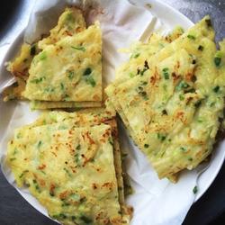 2.Chop raw green onions, add eggs, and add shredded potatoes as well
