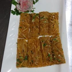 6.Cut the fried potato pancakes into pieces and place them on a plate