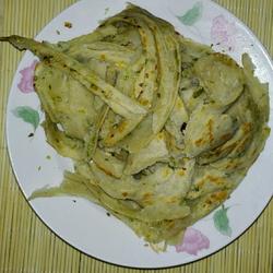 5. Roll out the dough and spread it evenly with scallion oil and ghee.superior.