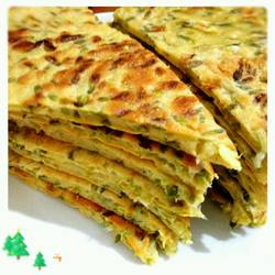 3. Stir the previous step evenly, heat the pan and add oil.Spread the batter flatly, fry one side first, then flip the other side