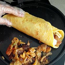 1.160g flour, one egg and a little salt.Add warm water, stir and fry on the electric pancake stall to make pancakes.