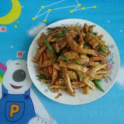 5.After the kidney beans change color, add carrots and stir-fry ham