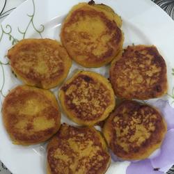 8.Put a little oil in the pot and heat it.Fry the sweet potato pancakes until golden brown on both sides