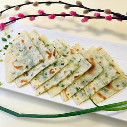 12. Heat the pan over low heat, without adding oil, put the scallion pancake directly into the pan