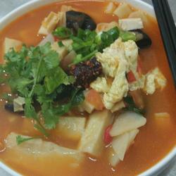 5.Pour the dough into the pot and cook for a while, add salt, monosodium glutamate, chicken essence, thirteen spices, and when it is almost cooked, add the eggs