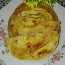 4. Apply a little oil on the dough, then sprinkle some salt and spicy powder.Spread them evenly.