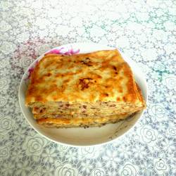 7. Spread the prepared filling on the surface, leaving 1/3 or 1/4, as shown in the picture