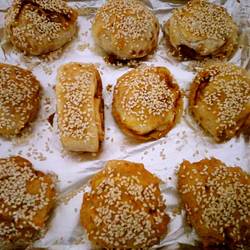13.Place on a baking sheet lined with greaseproof paper, brush with soy sauce water, sprinkle with sesame seeds, and rest for 20 minutes
