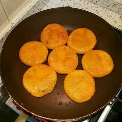 8. Fry the outer skin in the oil pan over low heat.Turn up the heat and fry the skin until golden and crispy.