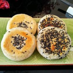 3. Gently press the dough into a cake shape, dip your hands in a little water, and pat lightly Spread sesame seeds on both sides of the pancake, and press the sesame seeds lightly with your hands to make the sesame seeds and the pancake fit tightly.