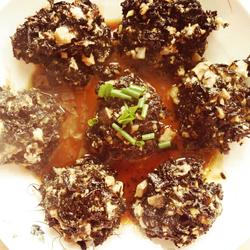 7. Knead them into meat balls, the size of which is about the size of a child's fist.It is too big to be cooked easily.Add a little cooking wine and steam in cold water for fifteen minutes.