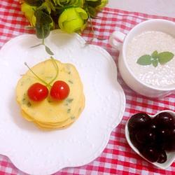 4. Brush the pan with oil, scoop a spoonful of batter, and fry over low heat until golden brown on both sides