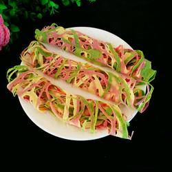 6. Brush a small amount of oil on the pan, pour in the batter, and match the color to your liking.Fry over low heat until cooked and rolled up