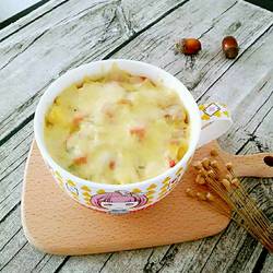 18.Preheat the oven to 180 degrees in advance.Place the baking bowl in the oven and bake for 15 minutes until the cheese melts