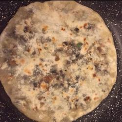 11. Roll the dough into a cake shape, thick in the middle and thin on the edges, put it in!