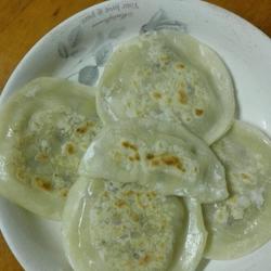 3.Cover with another dumpling wrapper and pinch the two pieces tightly.