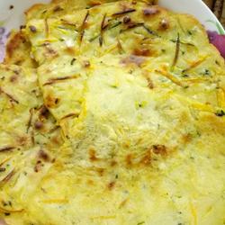 5. Brush a thin layer of oil on the bottom of the pan, heat the pan and cool the oil.After it is hot, use a spoon to put the mixed batter into the pan.Use the bottom of the spoon to spread the batter evenly on both sides.Evenly spread it as thinly as possible until both sides are browned before serving.It is good with soy milk or porridge