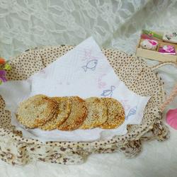 5. Divide the mixture into 20 grams, then dip your hands in water, roll it into a ball and flatten it.Roll a circle of white sesame seeds on top.