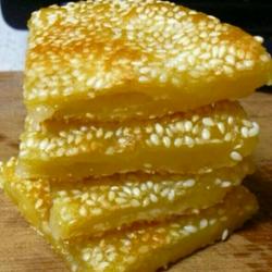 5.Use your palms to press into a cake and dip both sides with sesame seeds.