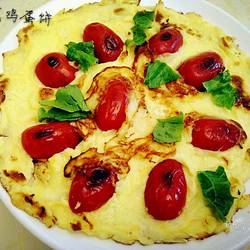 2.First beat two eggs into a bowl Crush it, add starch, a little salt, yogurt, put oil in the pot, pour the beaten eggs, fry for five minutes, add the cherry tomatoes cut in half, turn over after the eggs are solidified, and cook for one minute.Pot