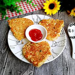 5. Place the heart-shaped mold in the pot, put two spoons of the rice mixture in it, turn it over after one minute, if the mold and the cake stick together, use a toothpick to remove the mold and the cake.Gently scratch between the cakes to remove them from the mold