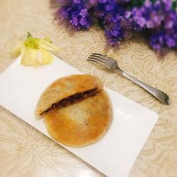 7.Gently press the dough with your hands.Concave shape, put appropriate amount of red bean paste into it